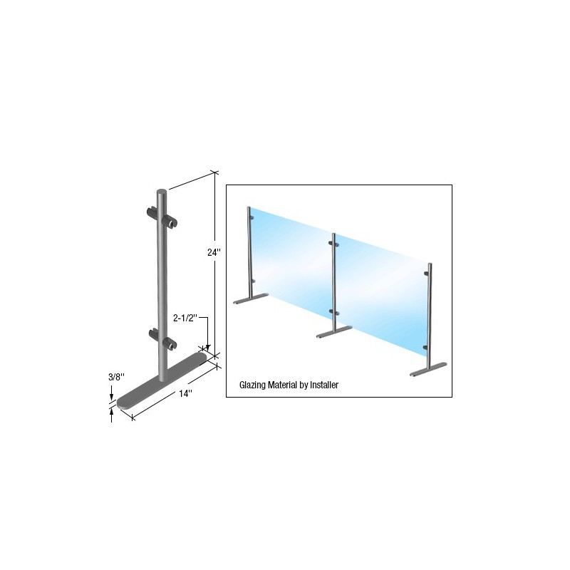 Portable Partition Posts are available in standard heights of 24" (610 mm) and 36" (914 mm), and act as protective barriers. They accept 1/4" (6 mm) and 3/8" (10 mm) glass or acrylic. SA50BS pressure fittings hold the glazing in place with no fabrication needed. A sturdy 2-1/2" (64 mm) x 14" (356 mm) removable base holds the post upright, which eliminates the need for counter attachment.