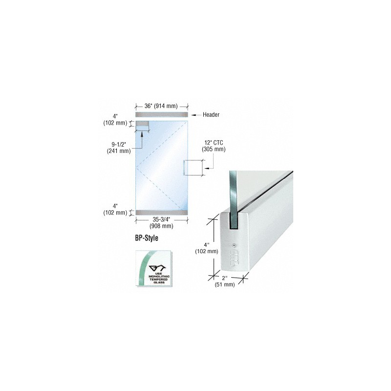 BP4SA12SE CRL Dry Glazed Frameless Glass 3' BP-Style Satin Anodized Single Door Complete Entrance Kit - without Lock