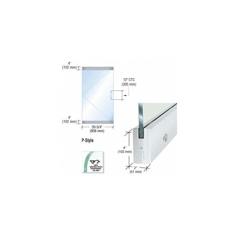 P4SA12SL CRL Dry Glazed Frameless Glass 3'-0" P-Style Satin Anodized Single Door Only Kit - with Lock