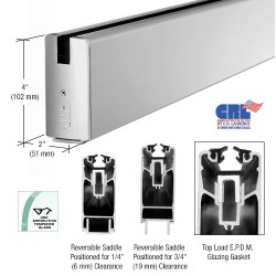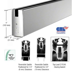 CRL 4" Custom Length Square Sidelite Rail for 3/8" or 1/2" Glass
