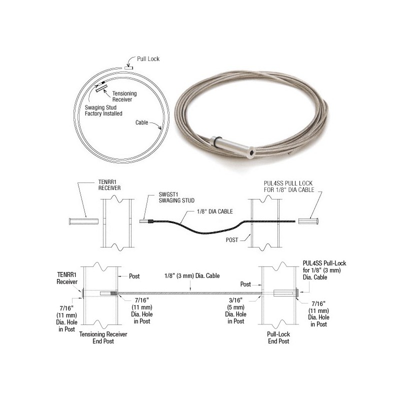 CRL Stainless Steel Cable is an infill option for any of our railing systems. Recommended spacing between cables is 3" (76.2 mm) center-to-center. The 1 x 19 construction Cable is engineered to hold static loads without stretching, and is relatively stiff. Order Cable in rolls, pre-cut kits with hardware, or we can custom cut it to your required length.