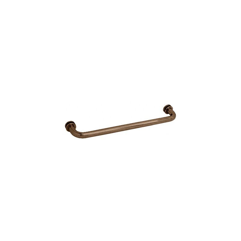 These CRL Single-Sided Towel Bars are designed for use on frameless glass doors or fixed panels. Bars are made from 3/4" (19 mm) diameter brass tubing, and come with matching finish metal washers. The narrow inside knob protrudes only 1/4" (6 mm) from the glass surface.