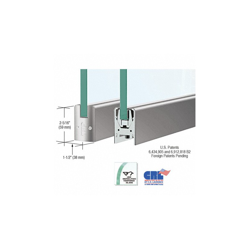Our CRL Low Profile Door Rail measures only 2-5/16" (59 mm) tall by 1-1/2" (38 mm) wide, and yet it incorporates our patented Wedge-Lock® Glass Securing System (U.S. Patents 6,434,905 and 6,912,818 B2, Canadian Patent 2,419,706, and European Patent No. EP 1 404 939 B1) CRL Low Profile Door Rails come complete with End Caps and are ready-to-install. They also come with installation instructions and adjustment wrenches.