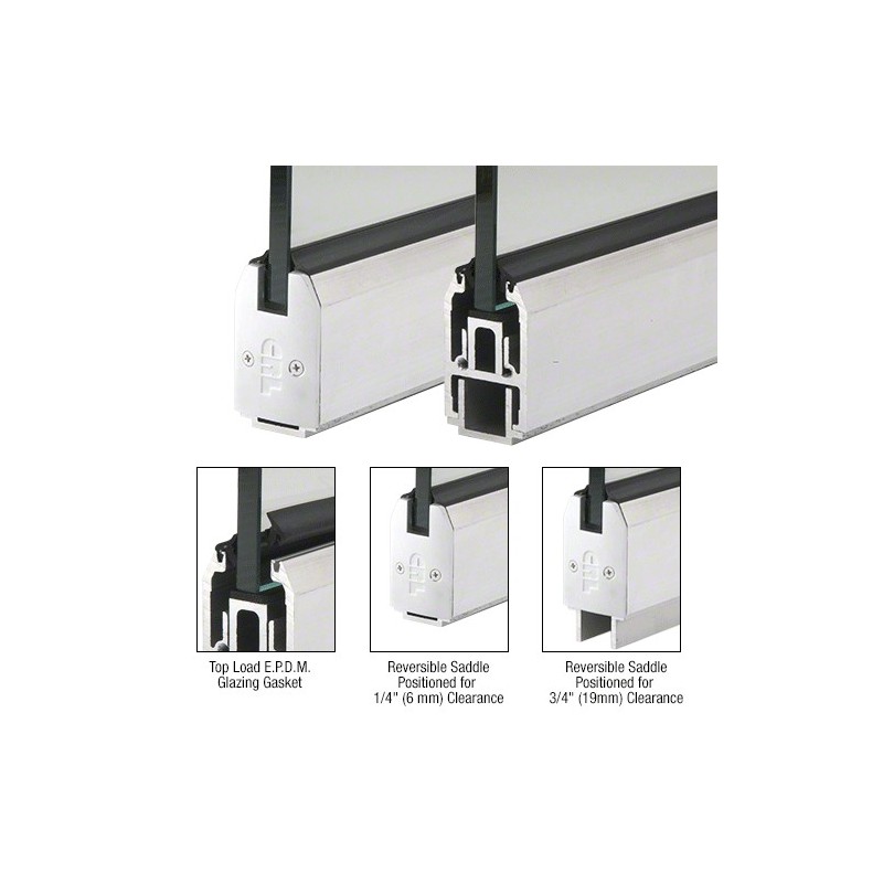 Extruded Saddle is Reversible to Match 1/4" (6 mm) or 3/4" (19 mm) Door Clearances