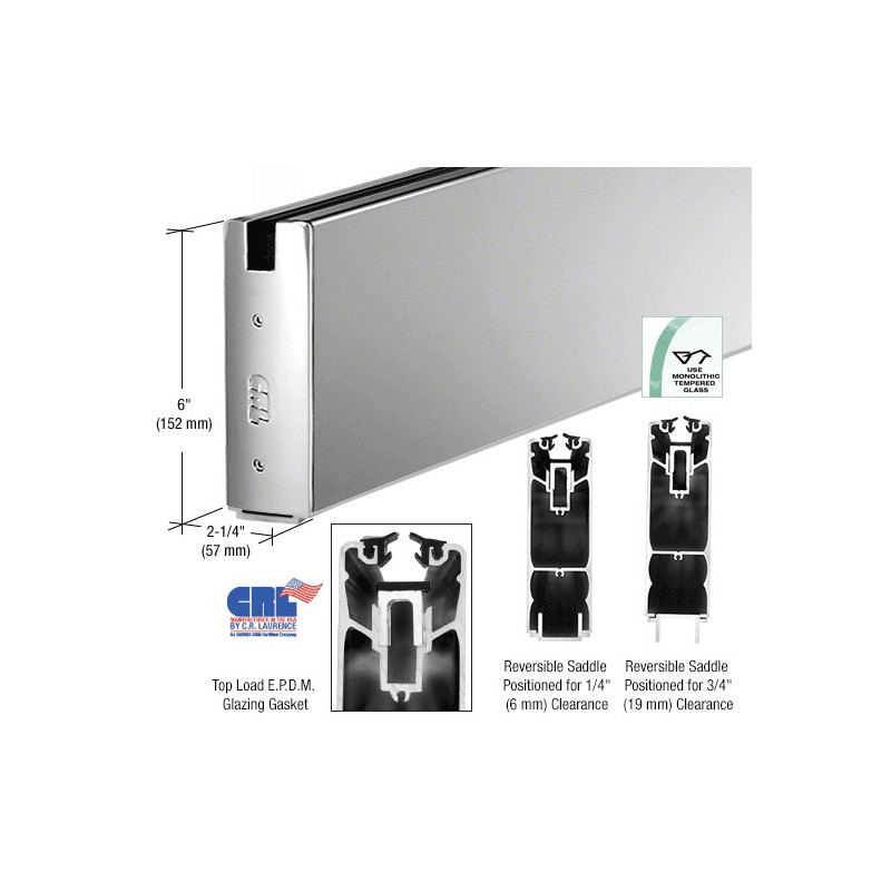SR6SPS34CL CRL Polished Stainless 6" Custom Length Square Sidelite Rail for 3/4" Glass