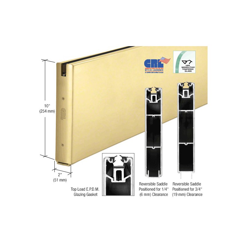 SR10SPB3812CL CRL Polished Brass Anodized 10" Custom Length Square Sidelite Rail for 3/8" or 1/2" Glass