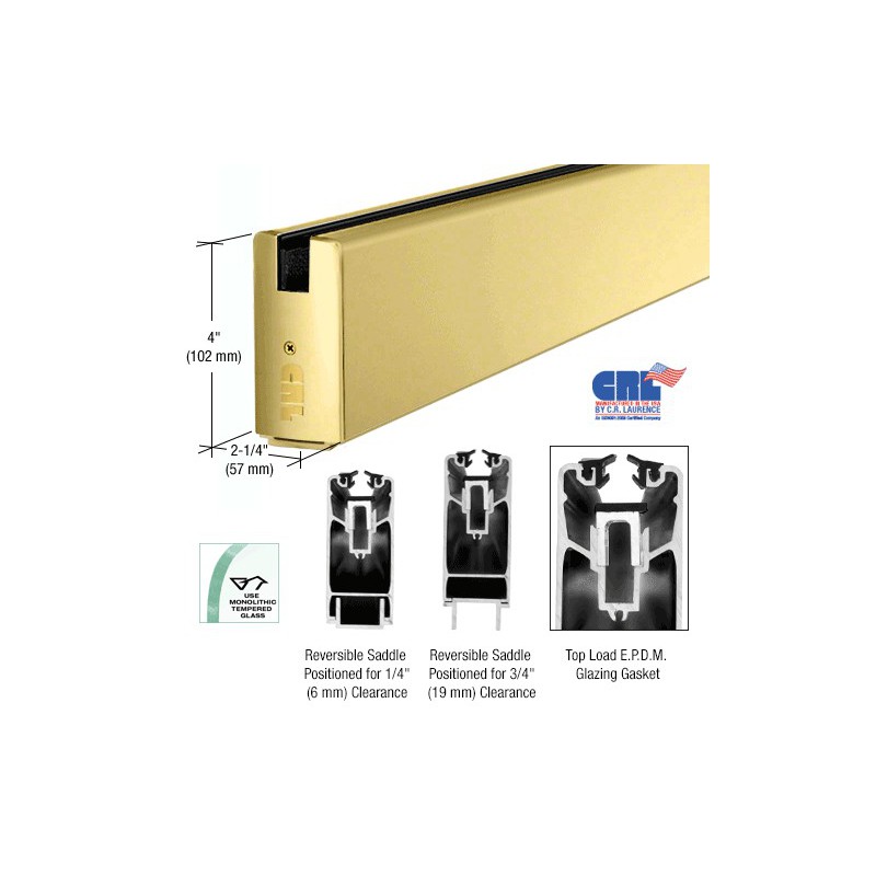 SR4SPB34CL CRL Polished Brass 4" Custom Length Square Sidelite Rail for 3/4" Glass