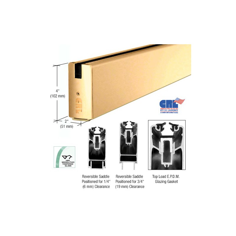 SR4SBGA3812CL CRL Brite Gold Anodized 4" Custom Length Square Sidelite Rail for 3/8" and 1/2" Glass