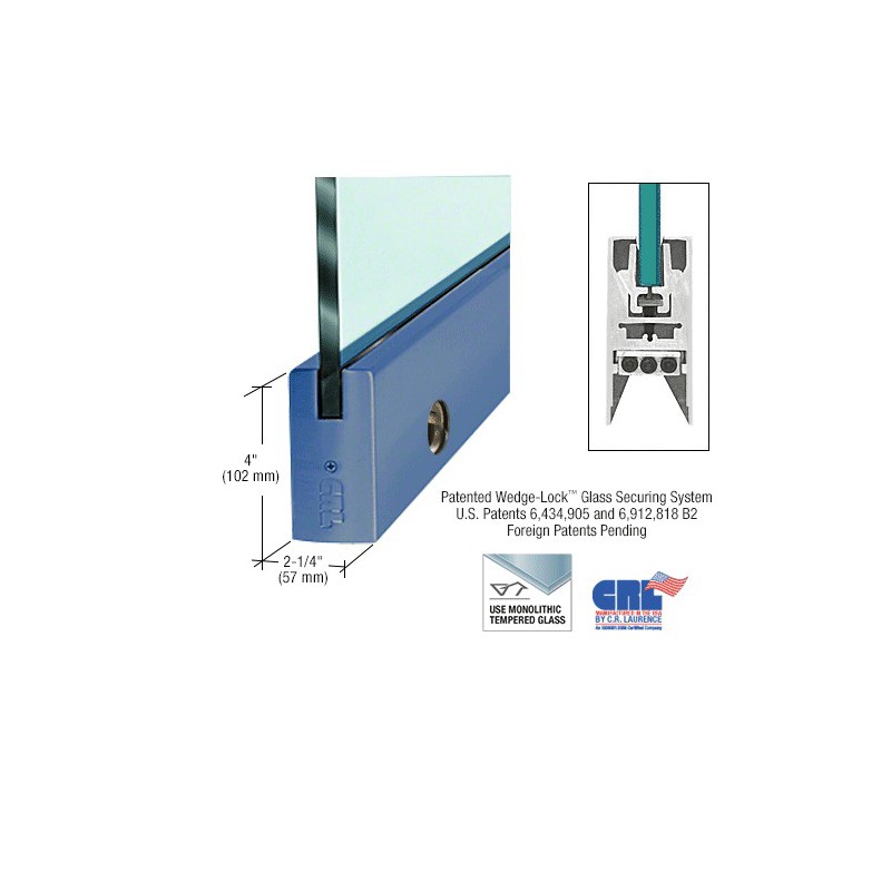 DR4SPT58CL CRL Custom Color 5/8" Glass 4" Square Door Rail With Lock - Custom Length