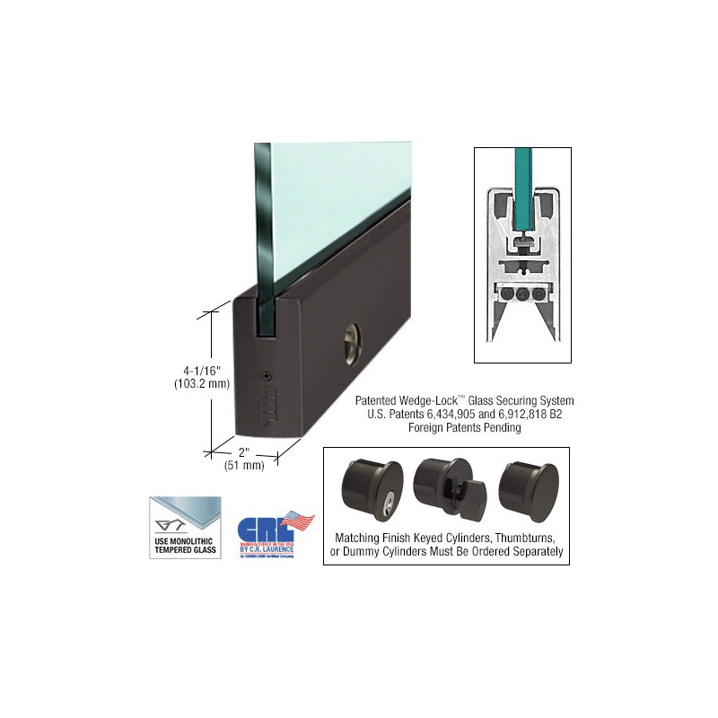 DR4SDU38CL CRL Black Bronze 3/8" Glass 4" Square Door Rail With Lock - Custom Length