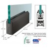 Our innovative glass entrance system, the CRL Wedge-Lock® Door Rail System features the exclusive CRL Wedge-Lock® Securing System (U.S. Patents 6,434,905 and 6,912,818 B2, Canadian Patent 2,419,706, and European Patent No. EP 1 404 939 B1). A totally new concept for securing the glass in the door rail. It works by applying pressure from the bottom of the door rail, using two glass retaining aluminum extrusions via a flat stainless steel bar. As this bar is pulled down with socket head cap bolts, pressure is applied to the glass retaining aluminum extrusions. The bottom of the extrusions are at an angle and fit into an angled groove in the door rail. As the glass retaining extrusions are being pulled down, the angled wedge in the door rail also pulls the glass retaining extrusions together. This action, along with our specially designed door retaining gasket, creates a tremendous amount of force (more than 900 lbs.) in our 9" (228.6 mm) Corner Rail. That's 100 lbs. per inch. Imagine how much force is created in our full length 35-3/4" (908 mm) Door Rails!