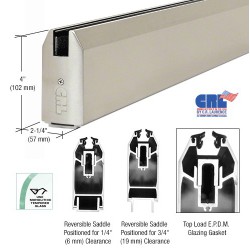The CRL 4" (102 mm) Tapered Sidelite Rail is commonly used in office and storefront applications to secure fixed glass panels. Since the profile matches our Door Rails, these Sidelite Rails can be used top and bottom for a matching look, or with a variety of smaller configuration U-Channels. Glass is installed easily with the 'lift and drop' method using our 4" (102 mm) Aluminum and Neoprene Setting Blocks. Glass is secured with a Top Load EPDM Roll-in Glazing Gasket that eliminates the messy application of silicone sealant. Also available in this size are our 4" (102 mm) Square Sidelite Rails to match our Square Door Rails.