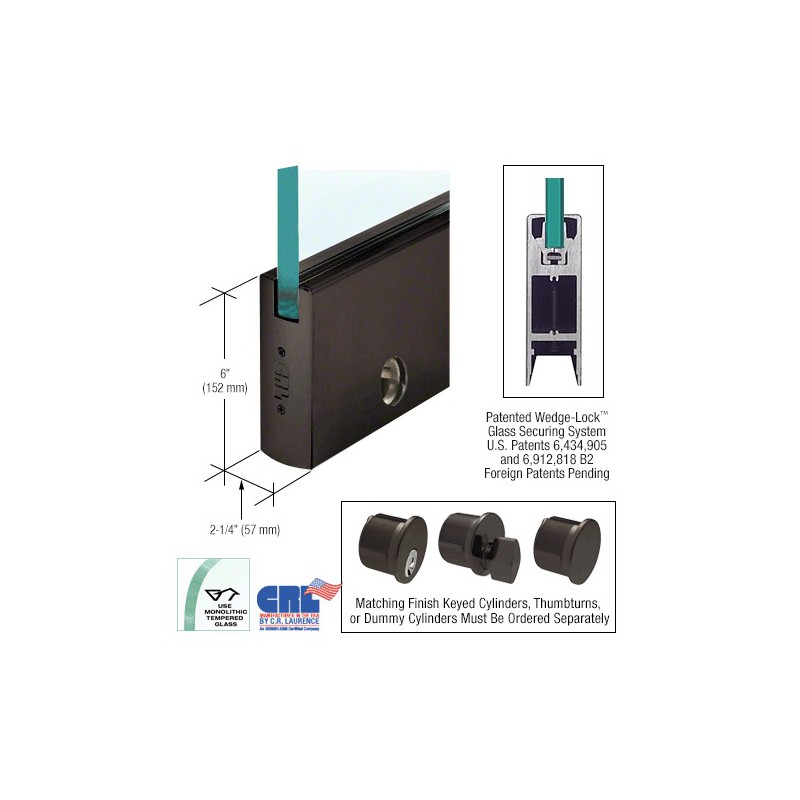 DR6SDU58SL CRL Black Bronze 5/8" Glass 6" Square Door Rail With Lock - 35-3/4" Length