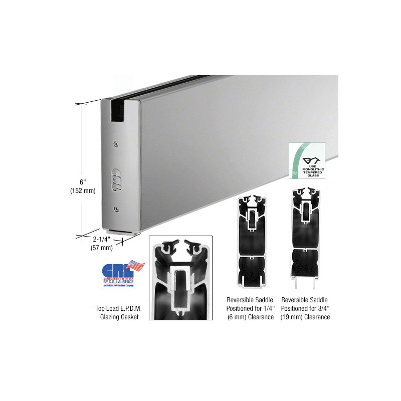 The CRL 6" (152 mm) Square Sidelite Rail is commonly used in office and storefront applications to secure fixed glass panels. Since the profile matches our Door Rails, these Sidelite Rails can be used top and bottom for a matching look, or with a variety of smaller configuration U-Channels. Glass is installed easily with the 'lift and drop' method using our 4" (102 mm) Aluminum and Neoprene Setting Blocks. Glass is secured with a Top Load EPDM Roll-in Glazing Gasket that eliminates the messy application of silicone sealant.