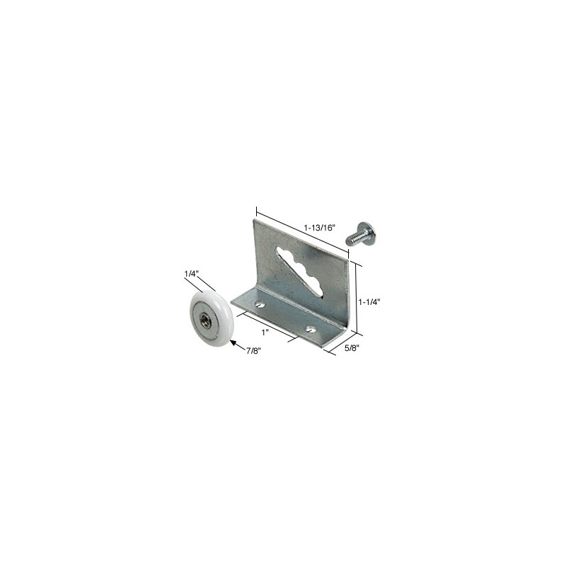 The oval edged CRL Sliding Shower Door Roller and Bracket has a nylon roller, steel ball bearing inner-race, and extruded aluminum bracket for top hung doors.