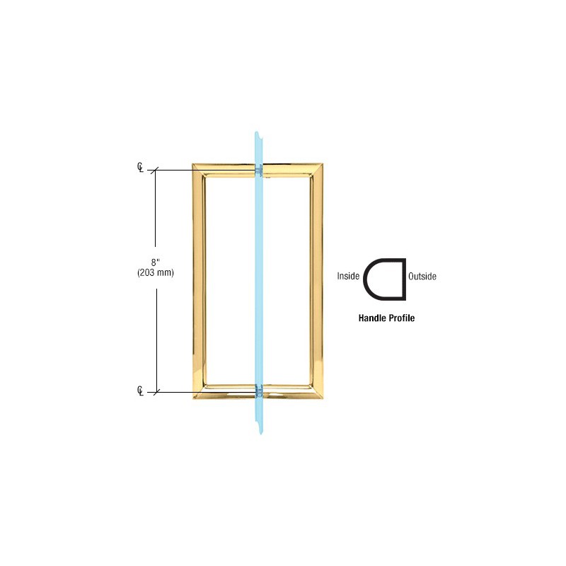 RM8X8ULBR CRL 8" Unlacquered Brass RM Series Flat Outside Surface/Round Tubing Inside Back-to-Back Pull Handle