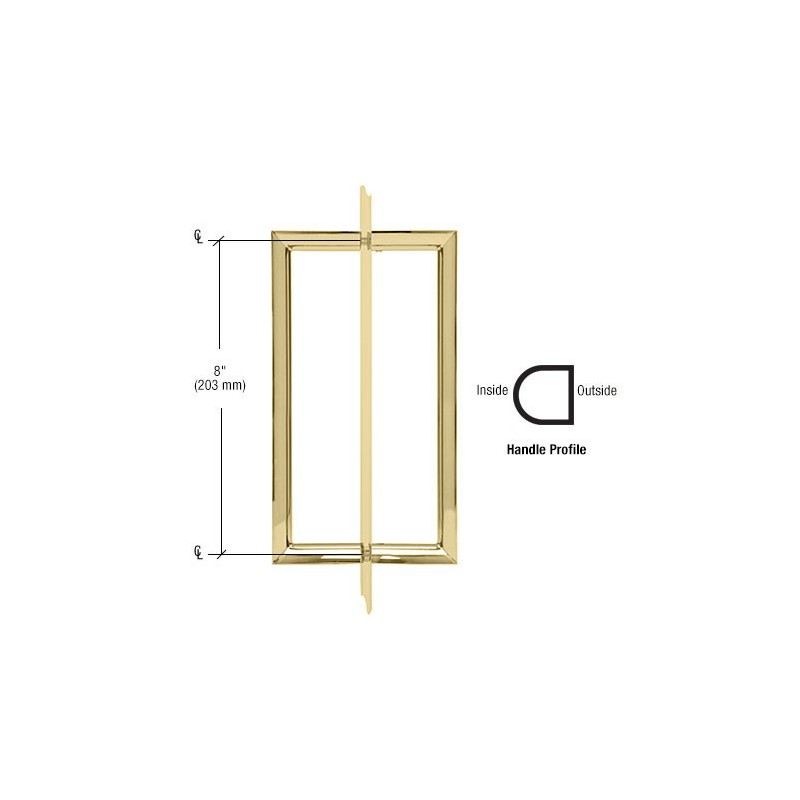 RM8X8ULBR CRL 8" Unlacquered Brass RM Series Flat Outside Surface/Round Tubing Inside Back-to-Back Pull Handle