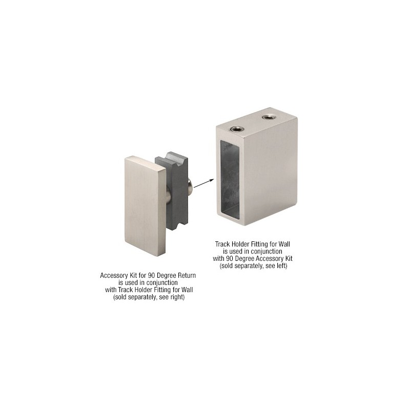 The 90 Degree Accessory Kit allows installation of 90 degree returns when using our Serenity Series Sliding System. Sold separately from the 180 Degree Kit itself, this 38 mm long x 19 mm wide piece comes with the screw needed for connection to the wall fitting. The 90 Degree Accessory Kit is available in polished stainless steel and brushed stainless steel.