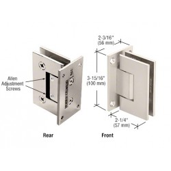 The CRL Adjustable Vienna Series has taken our popular Vienna Hinge to a new level. Adjustment to accommodate the desired angle (up to 90 degrees) is done after the door is hung. Simply loosen the Allen set screws and turn the door to the desired closed position. By merely tightening the Allen screws your door will self-center to the desired closed position. The door can swing 90 degrees inward and 90 degrees outward (adjusting angle from factory set position will reduce 90 degree swing in that direction). For doors pulling outwards only (using a clear door jamb), you can adjust the hinge to close 5 degrees inside the shower area, thus having the door close snugly against the jamb.