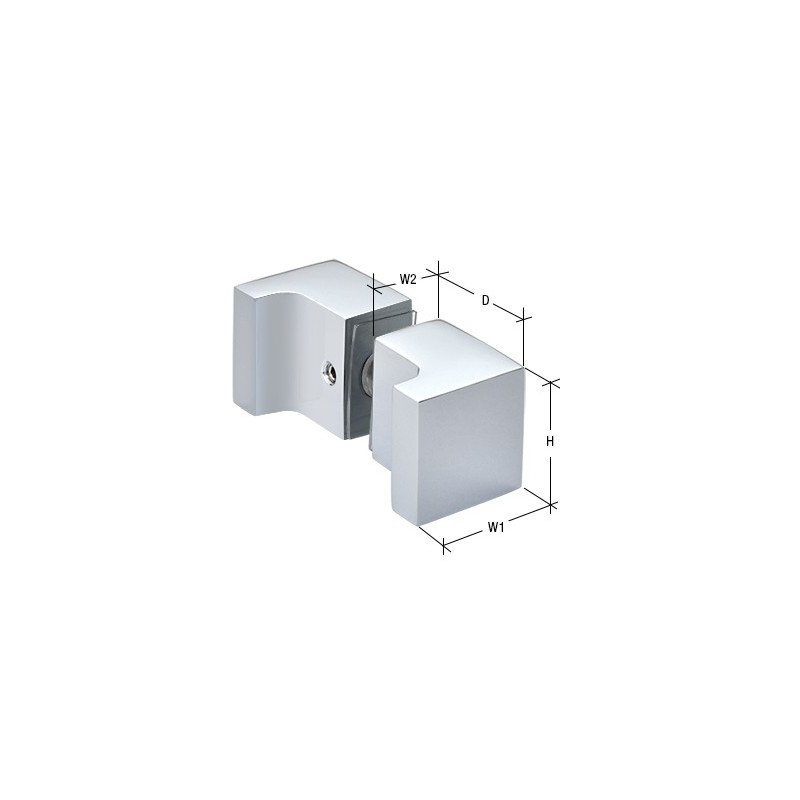 The Back-to-Back Square Finger Pull Knob certainly provides an alternative look when mounted to a frameless shower enclosure. The curved "finger pull" shape appearance, along with square corners, makes it an ideal choice for use with popular hinge series such as Geneva, Vienna, and Cardiff. Stocked in four popular finishes, the Knob requires glass fabrication. One hole, 1/2" (12 mm) in diameter. The glass thickness can range from 1/4" to 1/2" (6 to 12 mm).
