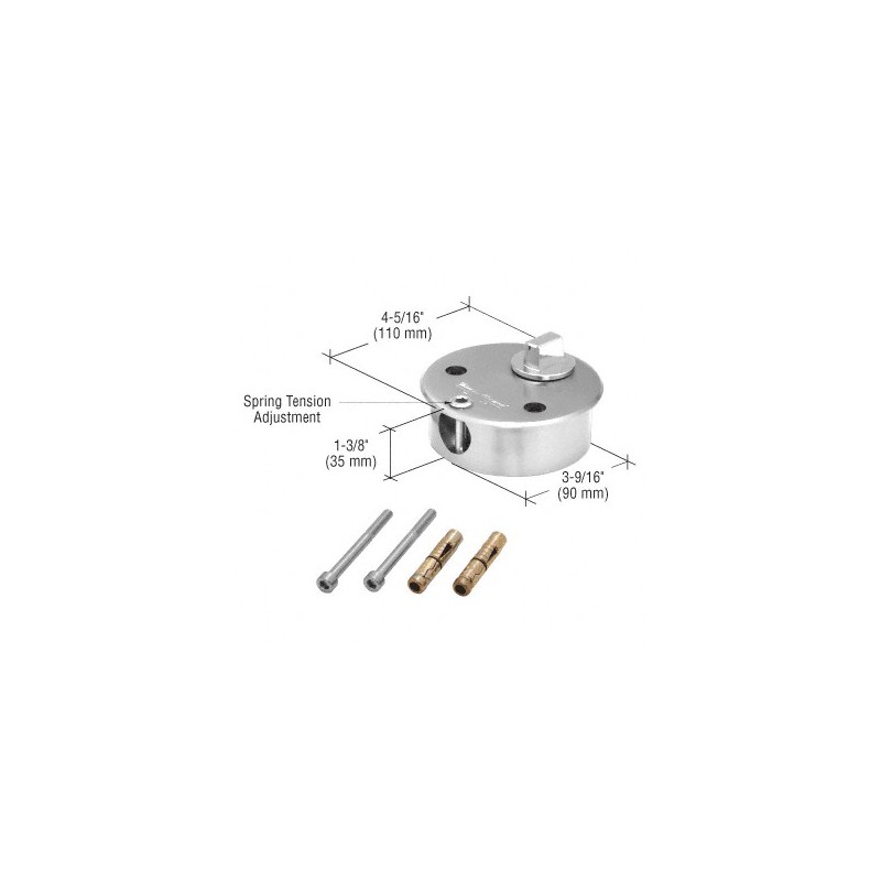 This unique CRL Beretta Floor Closer is small and compact, only 4-5/16" (110 mm) in diameter by 1-3/8" (35 mm) tall, but can handle a door up to 35-1/2" (902 mm) wide by 94-1/2" (2.40 m) tall with a maximum weight of 176 lbs. (80 kg).