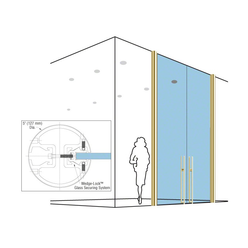 CRL-Blumcraft® 1200 Series Doors can be made up to 12' (3.6 m) tall and have no top or bottom rails. Instead they have a vertical Pivot Tube that runs the height of the door, achieving what appears to be truly 'all-glass' door.