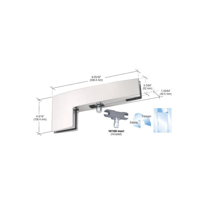 The Sidelite Mounted Transom Curved Patch is used to support a transom from a sidelite glass panel. It comes with a 1NT300 Top Insert for door mounting. On the non-hinged side the Insert can be removed, allowing for a double swinging door. A 1NT306 Transom Patch Door Stop Insert can be used to create a one way door.
