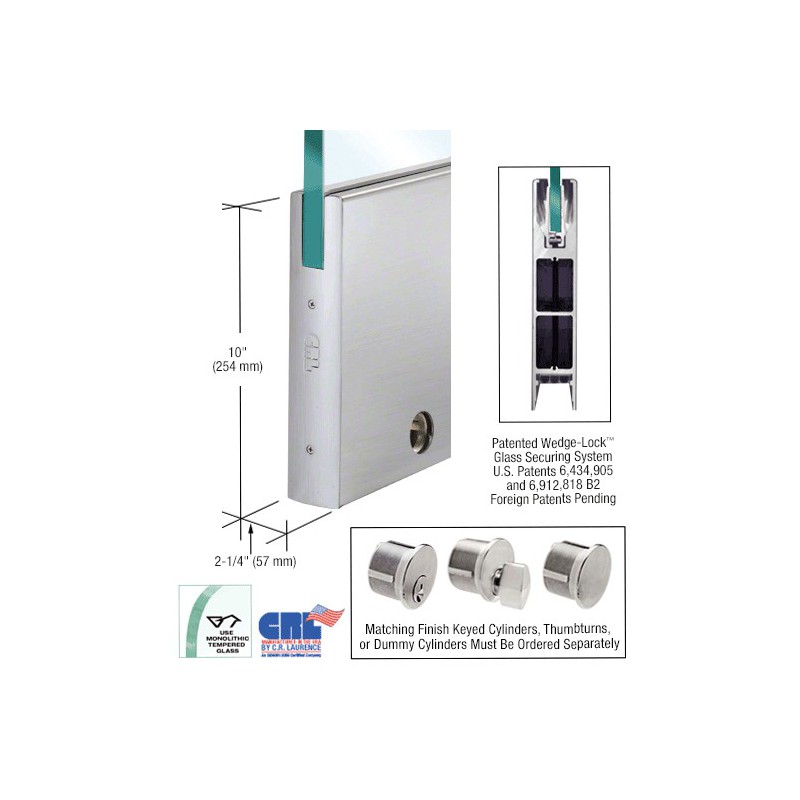 DR10SPT12CL CRL Custom Color 1/2" Glass 10" Square Door Rail With Lock - Custom Length
