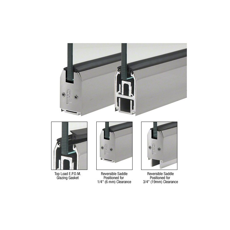 Extruded Saddle is Reversible to Match 1/4" (6 mm) or 3/4" (19 mm) Door Clearances