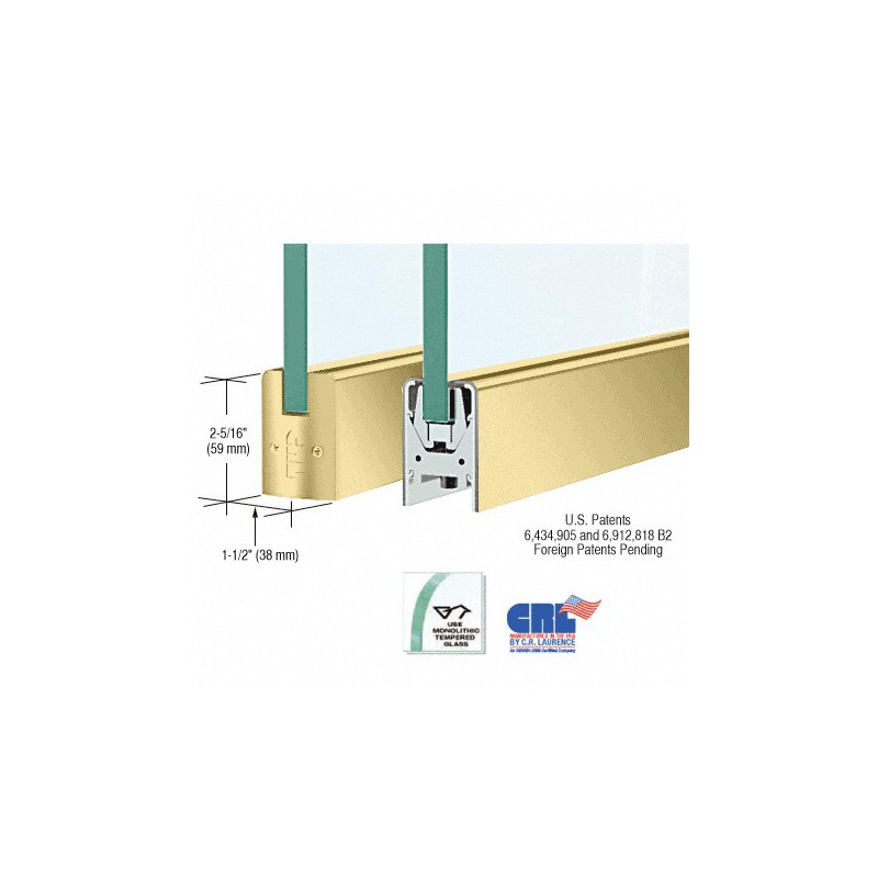 Our CRL Low Profile Door Rail measures only 2-5/16" (59 mm) tall by 1-1/2" (38 mm) wide, and yet it incorporates our patented Wedge-Lock® Glass Securing System (U.S. Patents 6,434,905 and 6,912,818 B2, Canadian Patent 2,419,706, and European Patent No. EP 1 404 939 B1) CRL Low Profile Door Rails come complete with End Caps and are ready-to-install. They also come with installation instructions and adjustment wrenches.