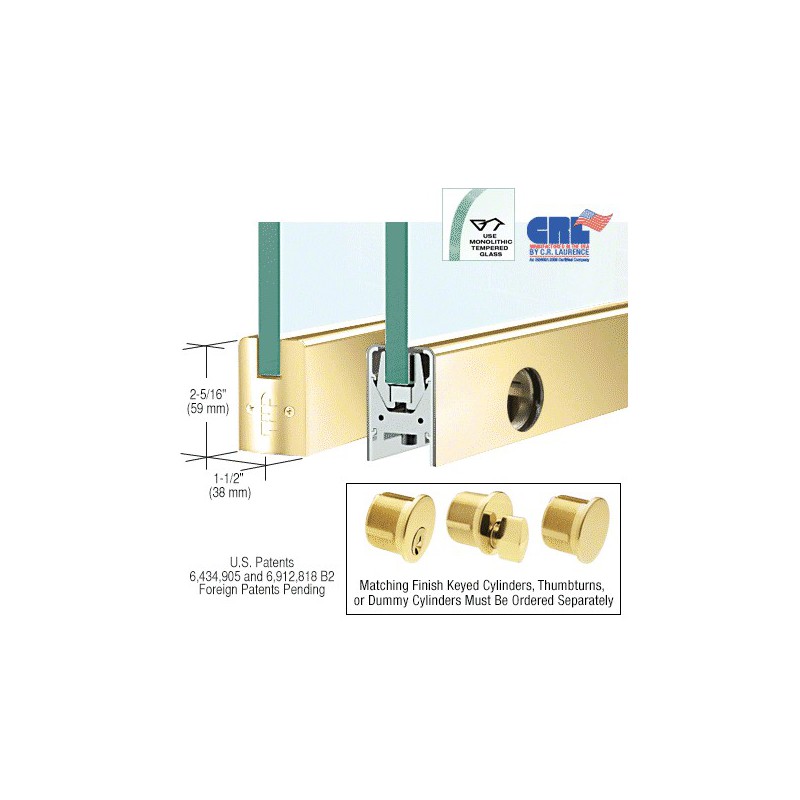 DR2SPB38CL CRL Polished Brass 3/8" Glass Low Profile Square Door Rail With Lock - Custom Length