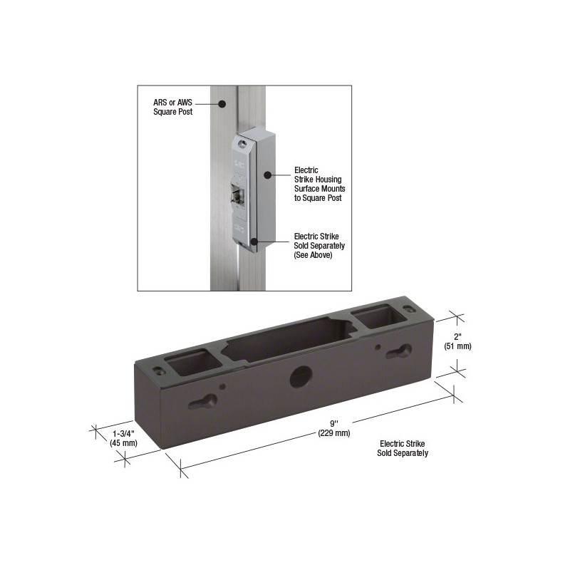 This CRL Electric Strike Housing is designed to work with the Adams Rite® AR74R1 Electric Strike (sold separately). The surface mount Housing is non-handed and easy to install. They are available in seven standard colors, with custom colors available upon request. Fasteners to attach to post are not included.
