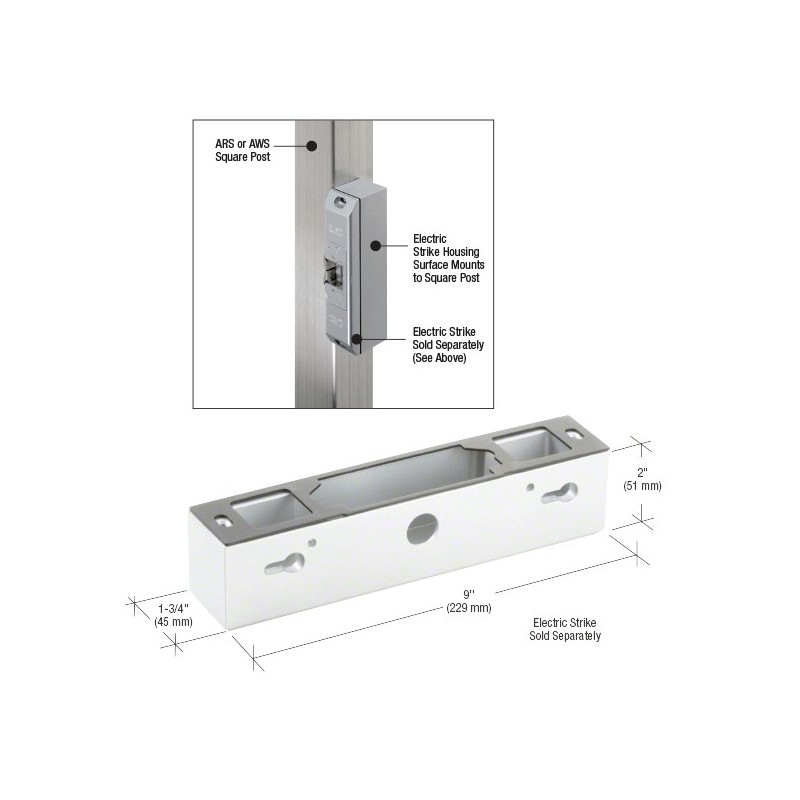 This CRL Electric Strike Housing is designed to work with the Adams Rite® AR74R1 Electric Strike (sold separately). The surface mount Housing is non-handed and easy to install. They are available in seven standard colors, with custom colors available upon request. Fasteners to attach to post are not included.
