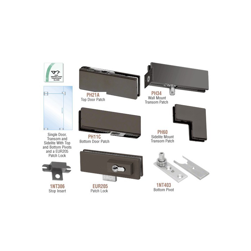 PHE4LDU CRL Black Bronze Anodized European Patch Door Kit for Use with Fixed Transom and One Sidelite - With Lock