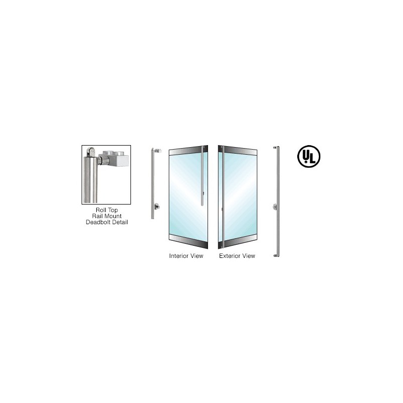 The locking mechanism is concealed within the vertical tubing of our Deadbolt Handles, providing easy access through a variety of keying options. An optional Top Latch Roller Bolt allows the use of Electronic Strikes for controlled entry systems. For additional information, contact our Technical Sales Department.