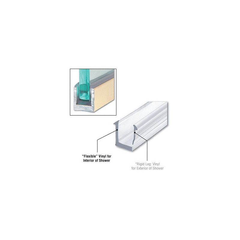 The CRL Flexible Vinyl is inserted into Cat. No. DUC38 U-Channel on the interior of the shower, while the CRL Rigid Leg Vinyl is inserted into the U-Channel on the exterior side. A Packing Charge will be added to orders of fewer than 10 combined lengths.