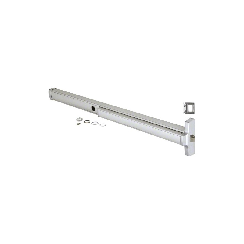 312095CRS4628 CRL 4' Jackson Model 2095 Cylinder Dogging Grade 1 Rim Latch Panic Exit Device Right Hand Reverse Bevel "S" Strike Fits 32" to 48" Wide Door Aluminum Finish