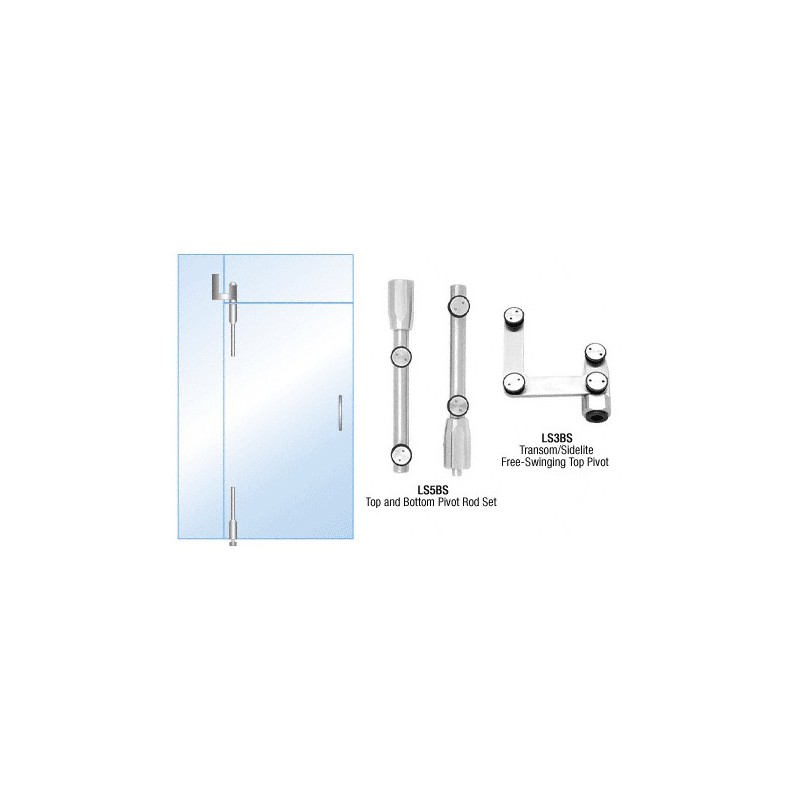 LS34BS CRL Brushed Stainless Laguna Pivot Door System for Use With Free-Swinging Doors With Sidelite and Glass Transom Bracket
