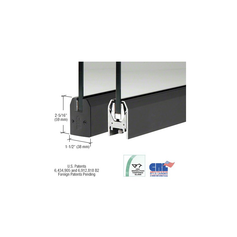 Our CRL Low Profile Door Rail measures only 2-5/16" (59 mm) tall by 1-1/2" (38 mm) wide, and yet it incorporates our patented Wedge-Lock® Glass Securing System (U.S. Patents 6,434,905 and 6,912,818 B2, Canadian Patent 2,419,706, and European Patent No. EP 1 404 939 B1) CRL Low Profile Door Rails come complete with End Caps and are ready-to-install. They also come with installation instructions and adjustment wrenches.
