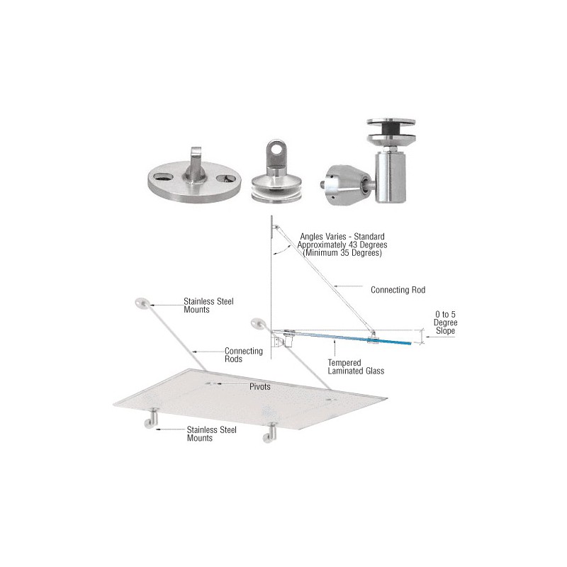 GAS190BS CRL Brushed Stainless Glass Awning Support System Mounting Kit