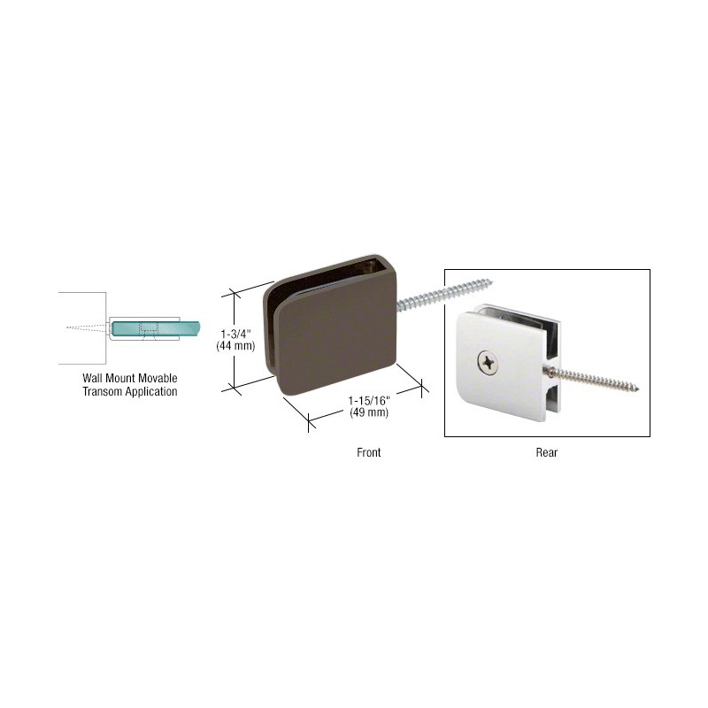 CRL Standard Movable Transom Clamps can be used to pivot transom panels above the shower door. Wall Mount and 180 Degree Glass-to-Glass Clamps can be used in any combination, depending upon the configuration of the enclosure. Replacement Nylon Washer is Cat. No. 90295A120.