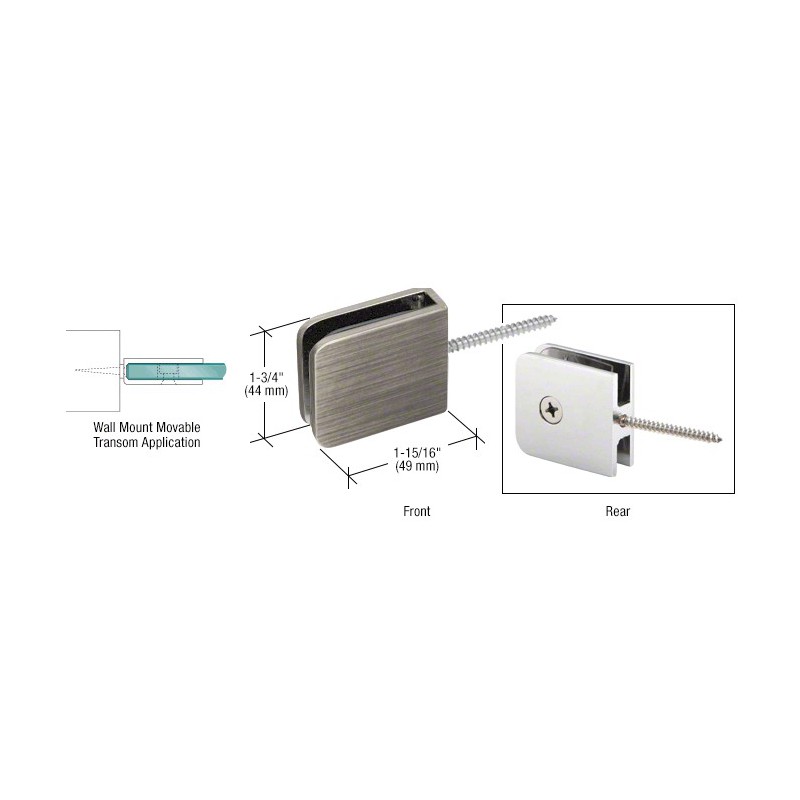 CRL Standard Movable Transom Clamps can be used to pivot transom panels above the shower door. Wall Mount and 180 Degree Glass-to-Glass Clamps can be used in any combination, depending upon the configuration of the enclosure. Replacement Nylon Washer is Cat. No. 90295A120.