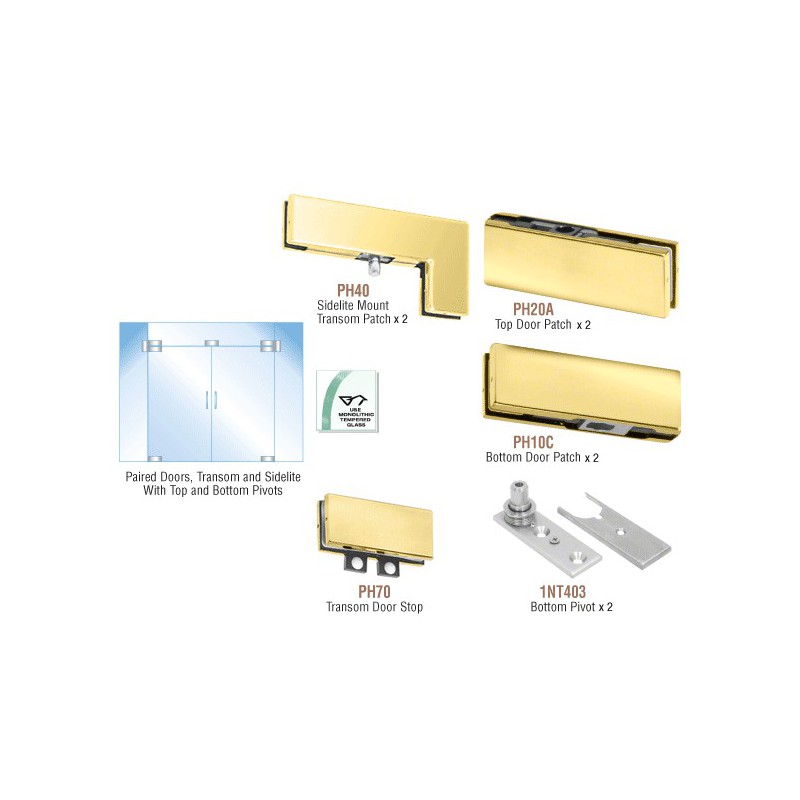 PHA8BR CRL Polished Brass North American Patch Door Kit for Double Doors for Use with Fixed Transom and Two Sidelites - Without Lock
