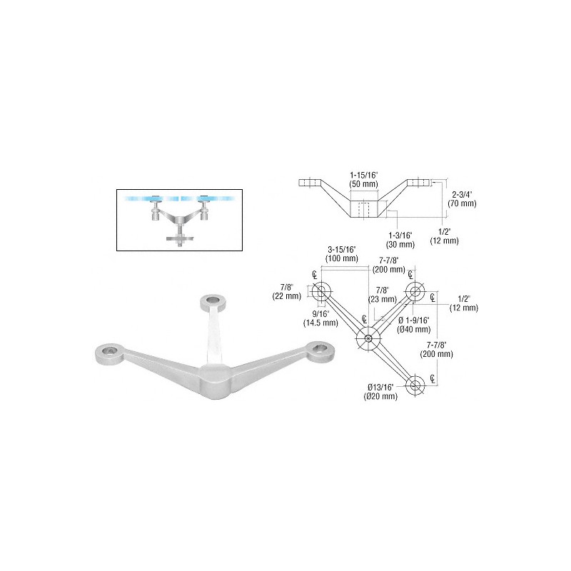 PMH3BS CRL Brushed Stainless 3-Way Arm Heavy Duty Post or Column Mount Spider Fitting