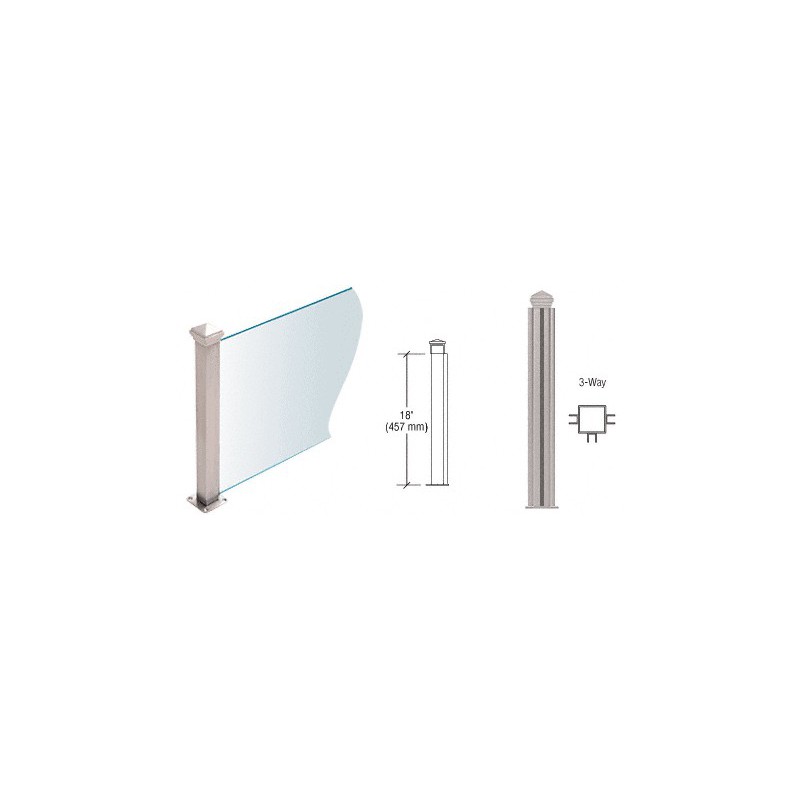 PP44TBS CRL Brushed Stainless 18" High 1-1/2" Square PP44 Plaza Series Counter/Partition 3-Way Post
