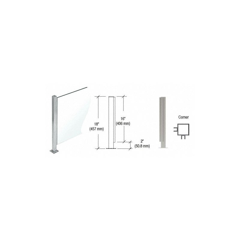 PP47LBS CRL Brushed Stainless 18" High 1" Square PP47 Mini Plaza Series Partition Corner Post with U-Channel
