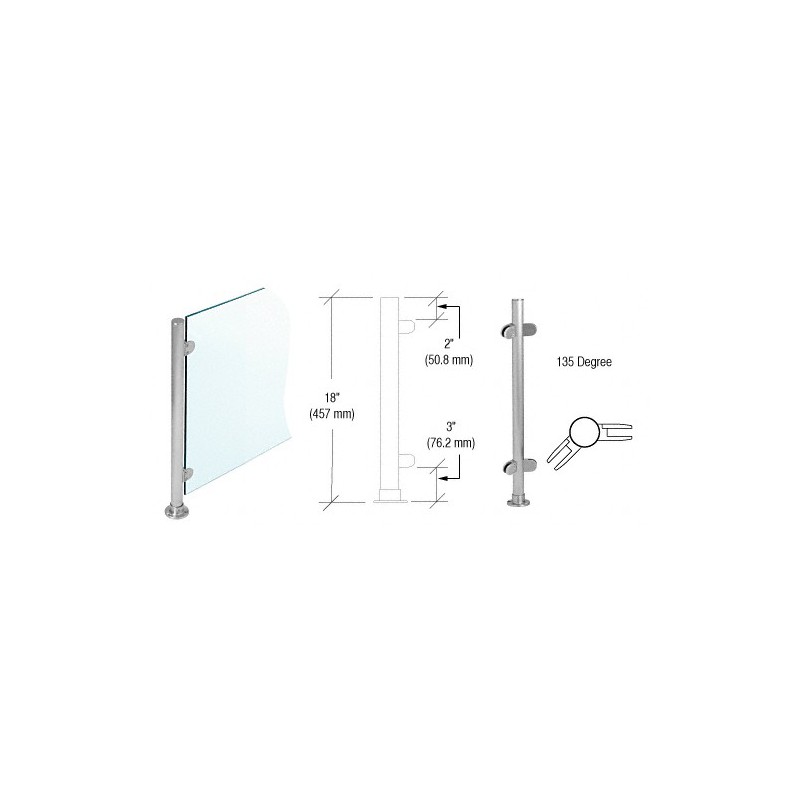 PP49APS CRL Polished Stainless 18" x 1" PP49 Slimline Series Round Partition 135 Degree Post