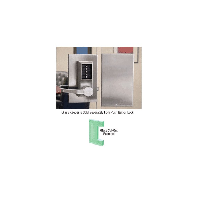 CRL Push Button Lock and Glass Keeper assemblies require no electrical connections so the mounting is exactly the same as our other 6" x 10" Center Locks. On the exterior side of the door is a Keypad with five vertical push buttons, numbered in sequential order from top to bottom. On the interior side there is a lever, which operates the Latchbolt at all times.