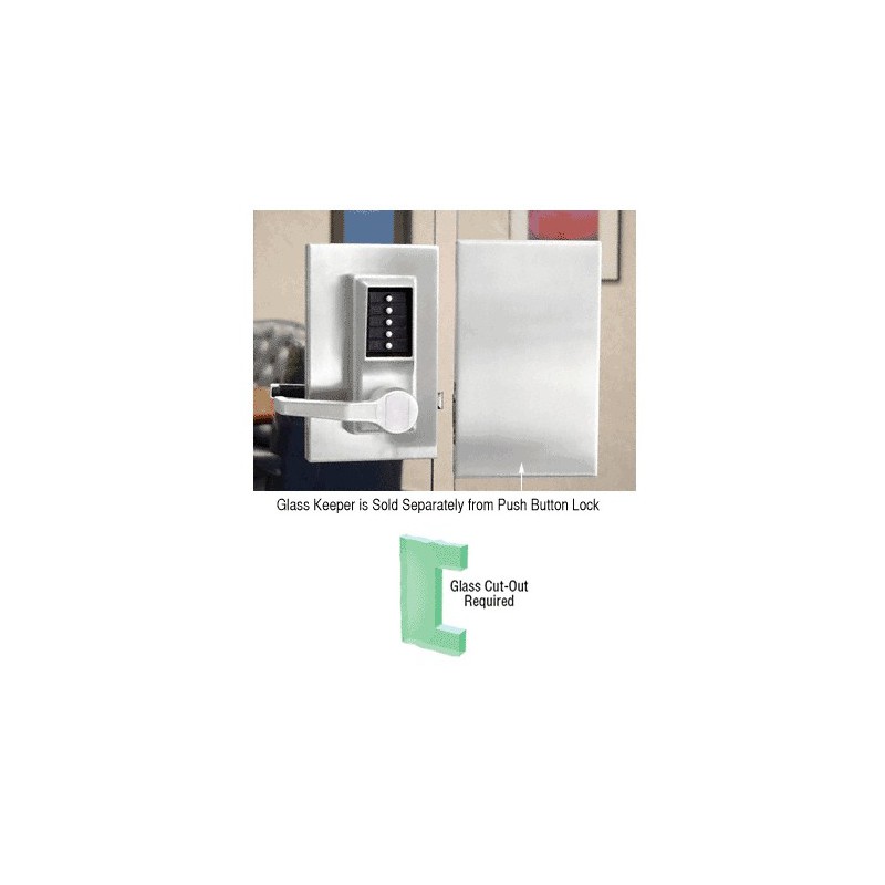 CRL Push Button Lock and Glass Keeper assemblies require no electrical connections so the mounting is exactly the same as our other 6" x 10" Center Locks. On the exterior side of the door is a Keypad with five vertical push buttons, numbered in sequential order from top to bottom. On the interior side there is a lever, which operates the Latchbolt at all times.