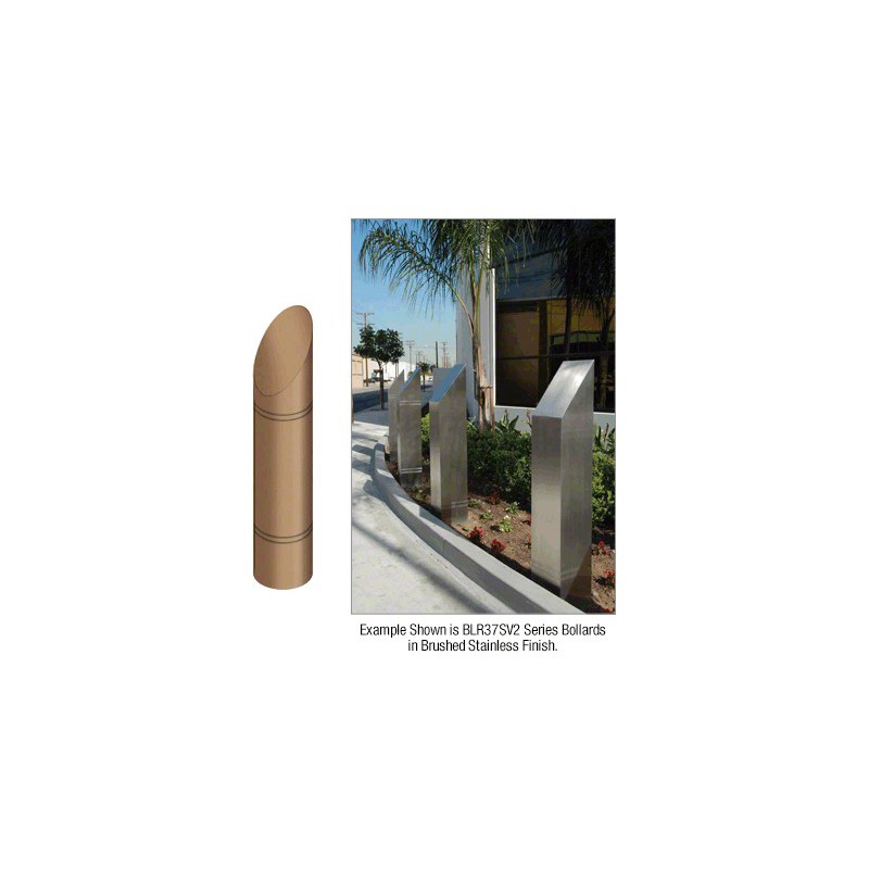 BLR37RV2SND CRL Stainless Steel Bollard 9" Round with Angled Top and Double Line Accents - Non-Directional